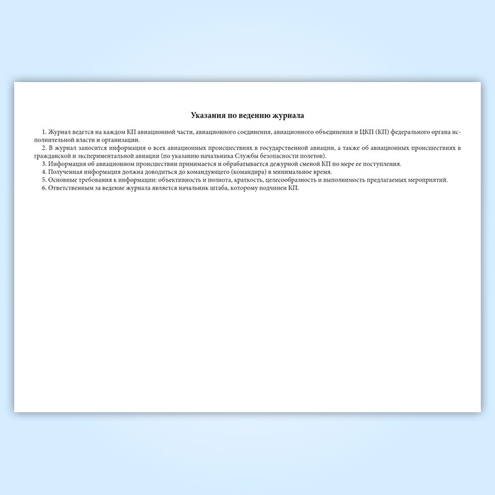 Форма журнала соответствует Приложению 3 к Правилам расследования авиационных происшествий и авиационных инцидентов с государственными воздушными судами в Российской Федерации.