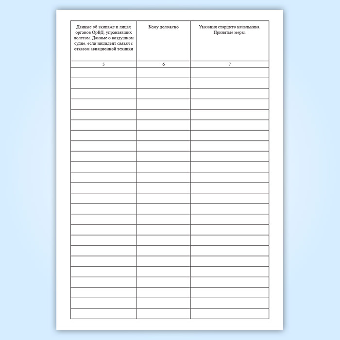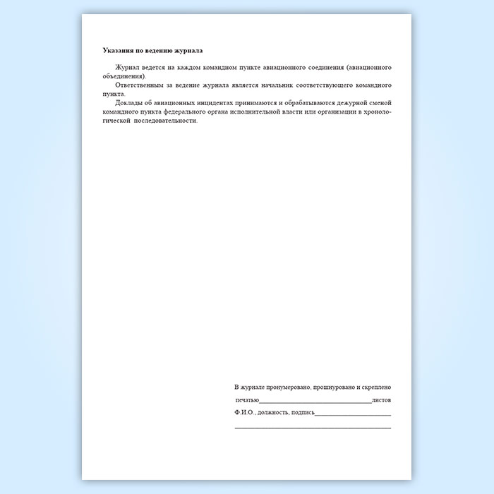 Форма журнала соответствует Приложению 10 к Правилам расследования авиационных происшествий и авиационных инцидентов с государственными воздушными судами в Российской Федерации.
