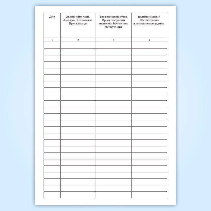 Журнал учета докладов об авиационных инцидентах имеет графы: