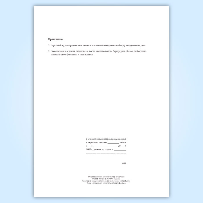 Бортовой журнал радиосвязи воздушного судна авиапредприятия