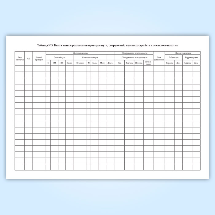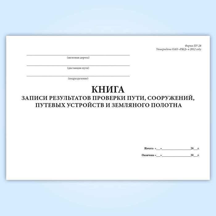 См также "Книгу записи результатов проверки пути, сооружений и путевых устройств (Форма ПУ-28)" формата А6.
