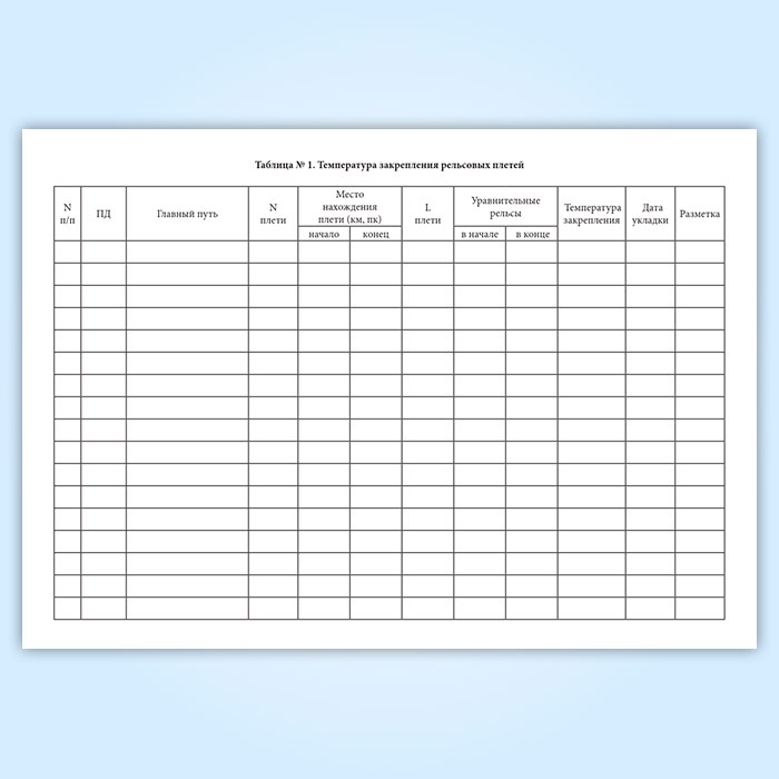 Таблица № 1. "Температура закрепления рельсовых плетей" содержит графы: