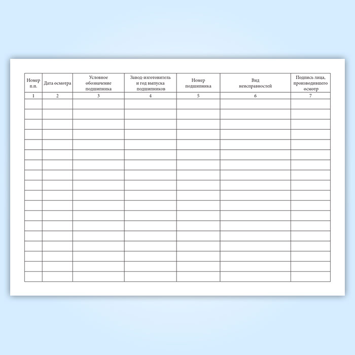 Сведения о каждом осмотренном подшипнике с указанием его состояния должны быть также занесены в журнал.