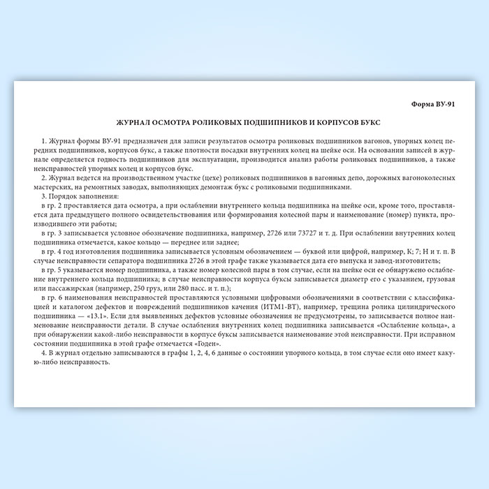 Журнал осмотра роликовых подшипников и корпусов букс (форма ВУ-91)