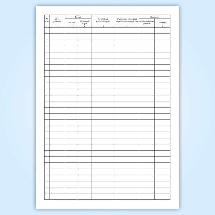 Журнал промежуточной ревизии букс с роликовыми подшипниками ВУ-92 имеет графы (столбцы):