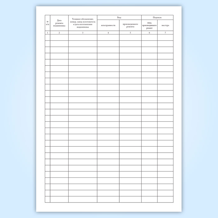 Журнал ремонта роликовых подшипников (форма ВУ-93)