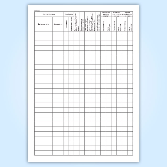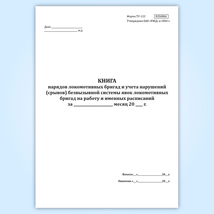 Книга нарядов локомотивных бригад и учета нарушений (срывов) безвызывной системы явок локомотивных бригад на работу и именных расписаний (форма ТУ-122)