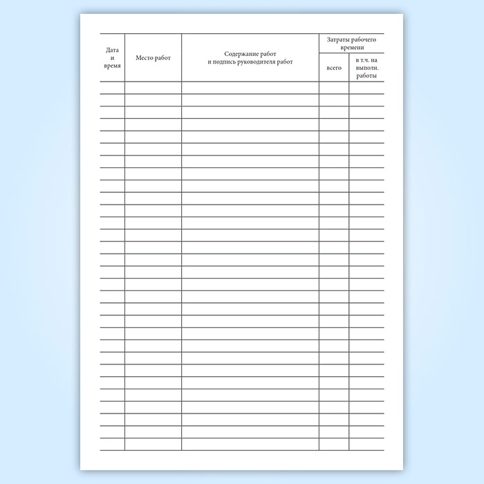 Книга произведенных работ по форме ЭУ-83а имеет графы (столбцы):