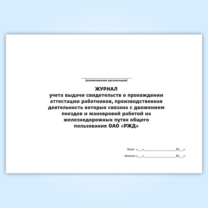 Журнал учета выдачи свидетельств о прохождении аттестации работников, производственная деятельность которых связана с движением поездов и маневровой работой на железнодорожных путях общего пользования ОАО «РЖД»