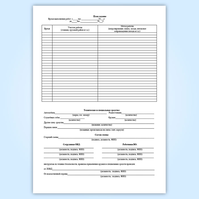 Для учета работы совместной специализированной группы ведомственной охраны железнодорожного транспорта и органов внутренних дел на транспорте ведут специальный журнал (Форма № ОГВ-15).
