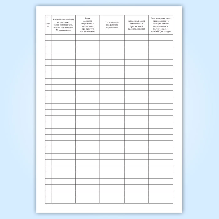 Журнал осмотра и ремонта подшипников качения (форма ТУ-92)