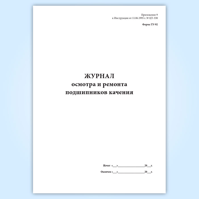Форма журнала осмотра и ремонта подшипников качения ТУ-92 входит в Инструктивные указания о порядке составления учетных форм по локомотивному хозяйству. МПС РФ, № ЦЧУЛ-68 от 30.09.1999.
