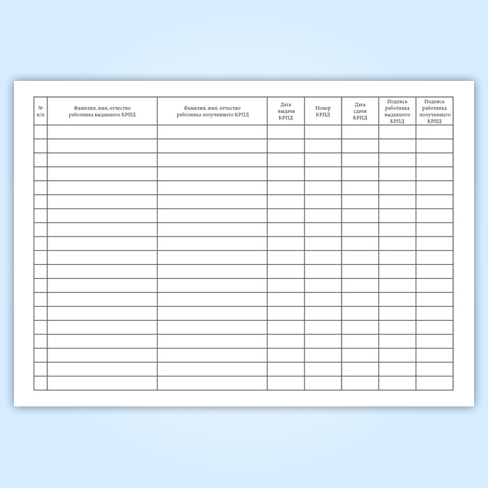 Журнал регистрации выдачи-сдачи кассет регистрации параметров движения (КРПД) имеет графы (столбцы):