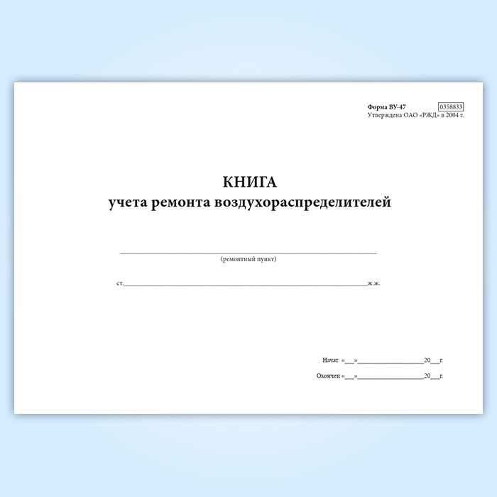 Книга учета ремонта воздухораспределителей (форма ВУ-47)