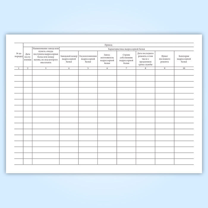 Журнал ремонта и оборота надрессорных балок тележек грузовых вагонов (форма ВУ-39)