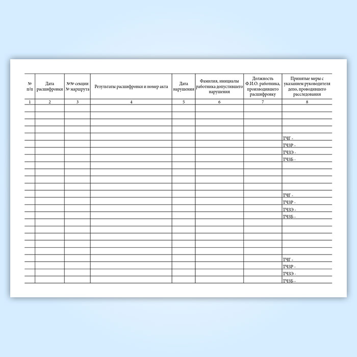 Журнал регистрации нарушений, выявленных при расшифровке РПДП имеет графы: