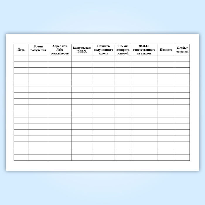 Эскалаторы и траволаторы представляют собой движущиеся под разными углами дорожки, для быстрого перемещения пассажиров. В журнале учета выдачи ключей от помещений, в которых размещено оборудование траволатора фиксируют дату выдачи и возврата ключей, а также ФИО и подписи всех ответственных.