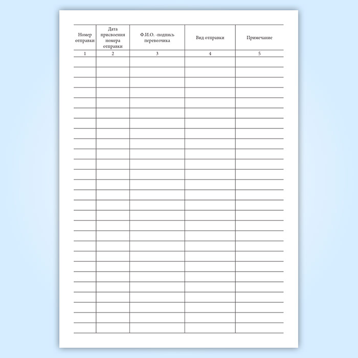 Книга нумерации грузовых отправок (форма ГУ-35)