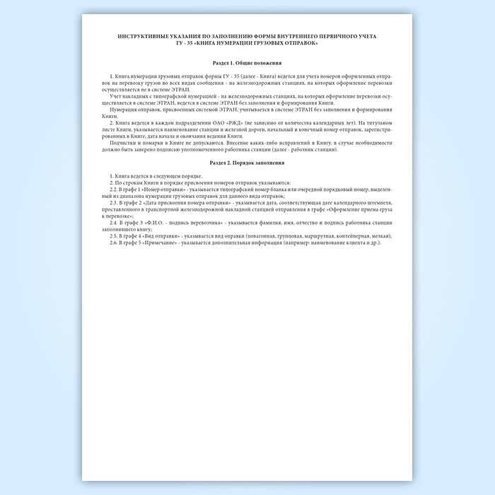 Форма книги нумерации грузовых отправок (ГУ-35) утверждена распоряжением ОАО «РЖД» от 28.03.2018 г. № 635/р