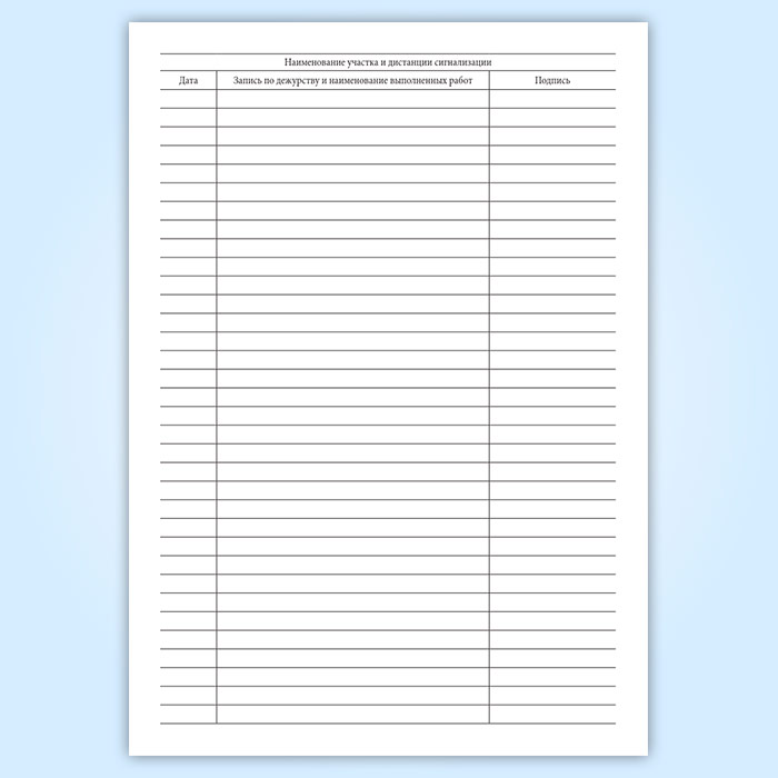 - Запись по дежурству и наименование выполненных работ