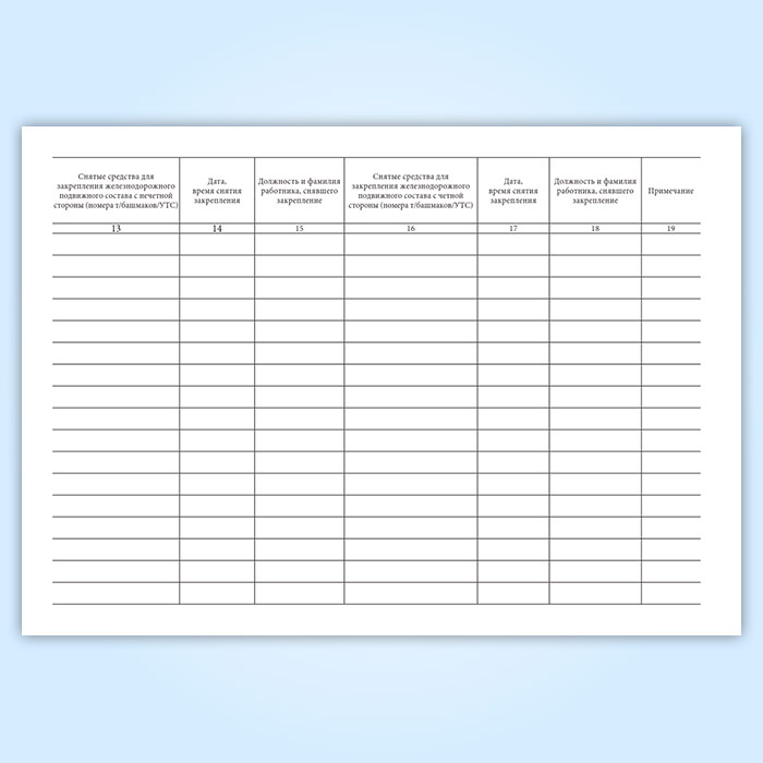 Журнал учета тормозных башмаков, используемых для закрепления железнодорожного подъездного состава имеет графы: