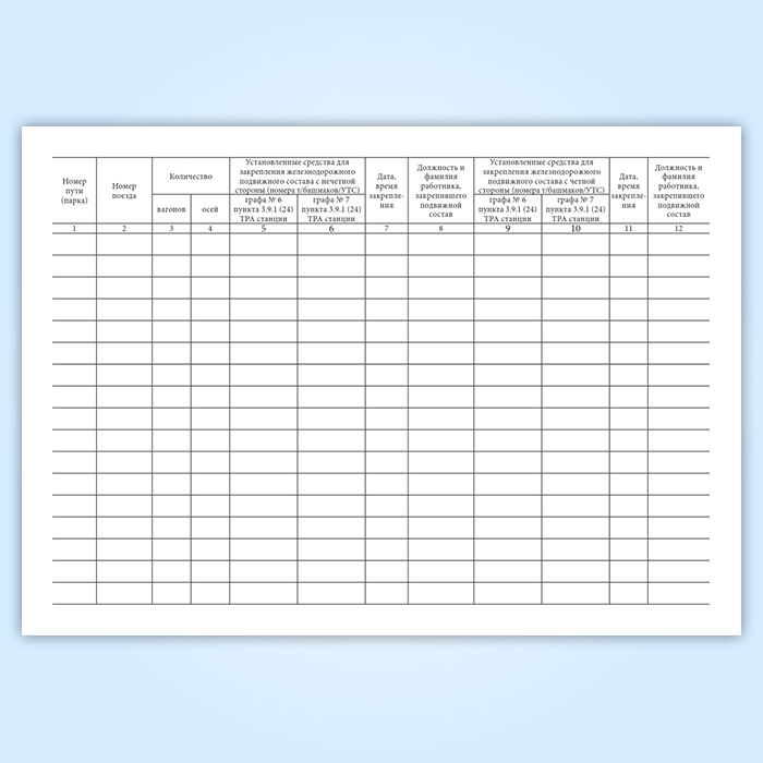 Учет тормозных башмаков, используемых для закрепления железнодорожного подъездного состава ведут с помощью специального журнала.