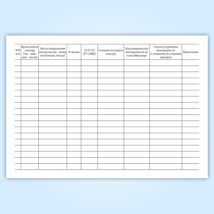 Книга регистрации коммерческих неисправностей вагонов в поездах в пунктах коммерческого осмотра (форма ГУ-98ВЦ)