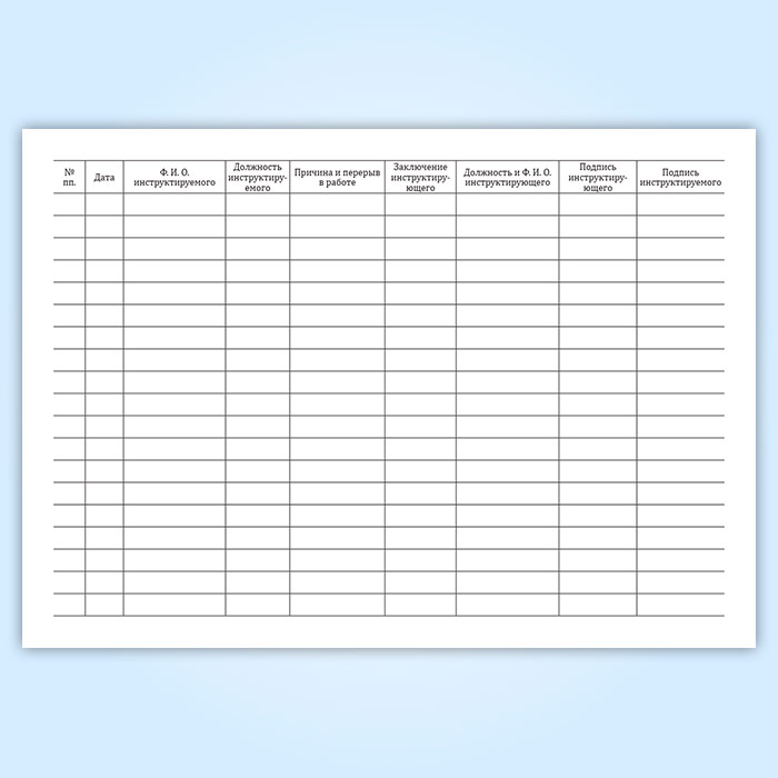 При перерыве в работе свыше 10 календарных дней работнику при явке на работу проводится инструктаж, а затем устраивают проверку знаний. Результаты фиксируют в журнале с указанием Ф.И.О. инструктируемого и инструктирующего.