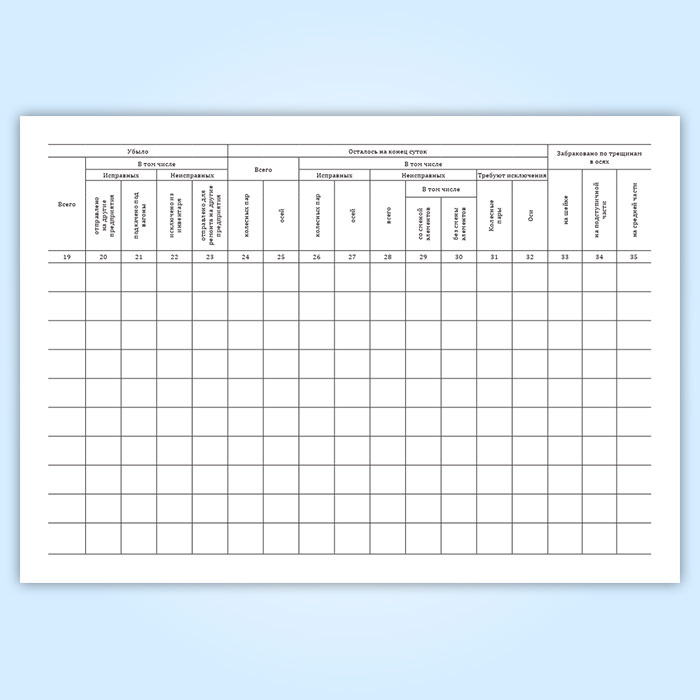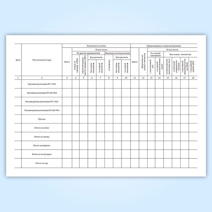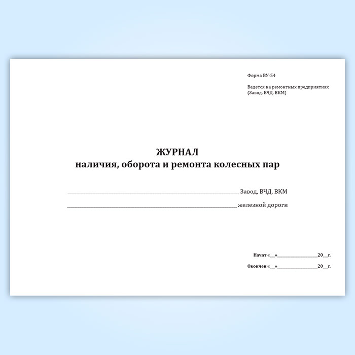Журнал учета наличия, оборота и ремонта колесных пар (форма ВУ-54)