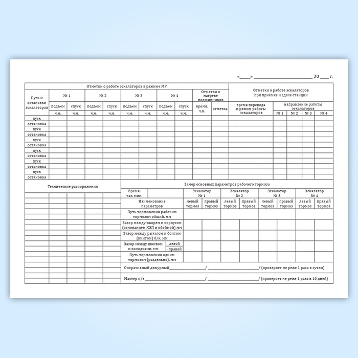Журнал суточного учета работы эскалаторной станции (форма Муэс-1)
