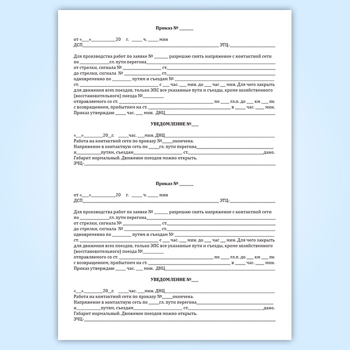 На производство ремонтных и строительных работ, требующих по своему характеру закрытия перегона, должно быть получено разрешение. При его наличии закрытие перегона (железнодорожного пути перегона или железнодорожной станции) до начала работ оформляется приказом в журнале, а окончание работ отмечают в уведомлении.