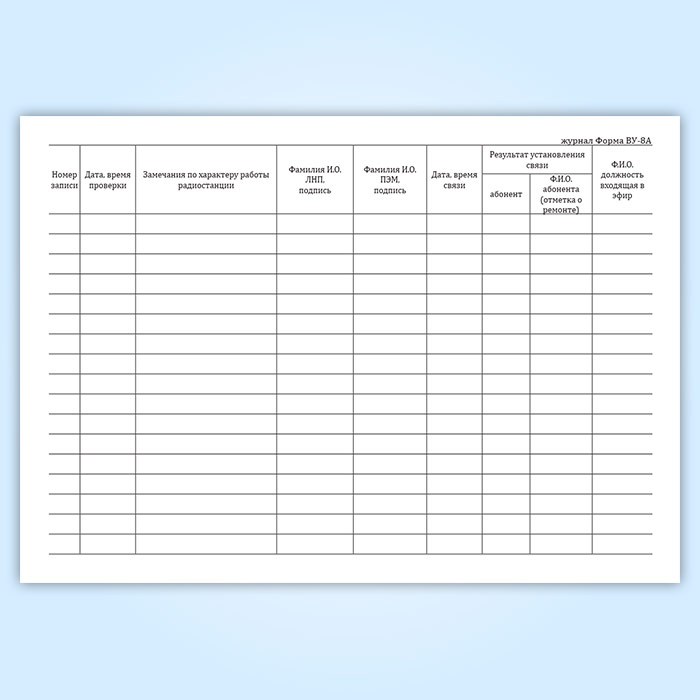 Журнал работы поездной радиостанции (форма ВУ-8А)