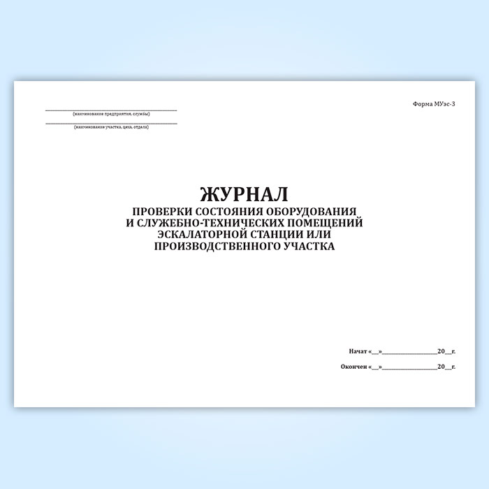 Журнал проверки состояния оборудования и служебно-технических помещений эскалаторной станции или производственного участка (форма МУэс-3)