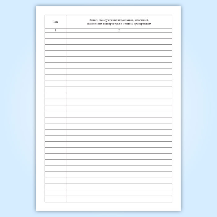В графе «Запись обнаруженных недостатков, замечаний, выявленных при проверке и подпись проверяющих» перечисляются обнаруженные недостатки в содержании технических средств, технической документации, факты нарушения технологии производства работ и т.д. В этой же графе ниже перечня недостатков, проверяющие указывают должность, фамилию, инициалы и ставят свою подпись.