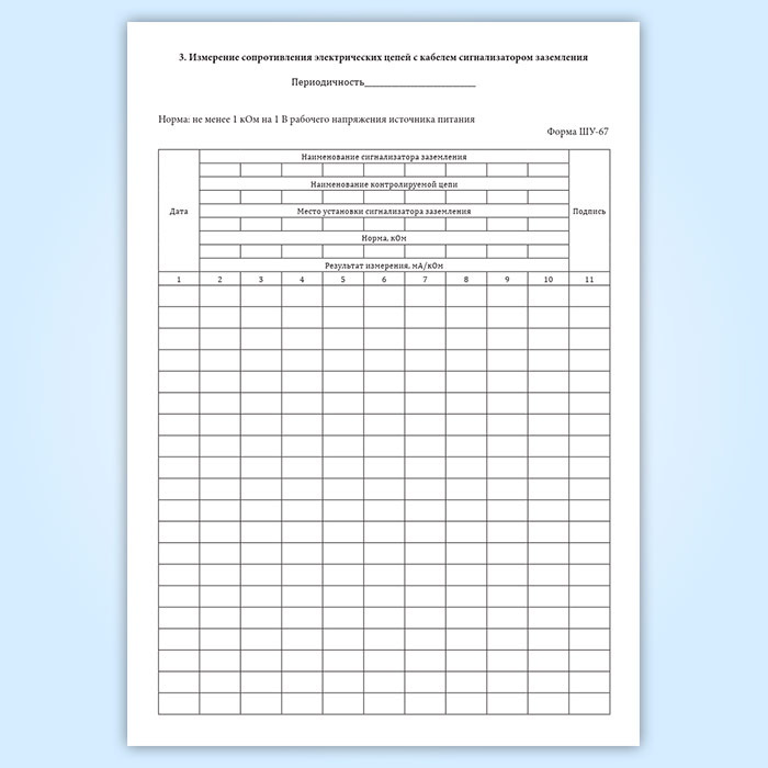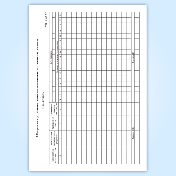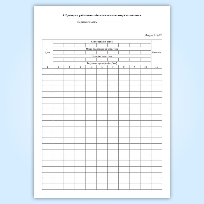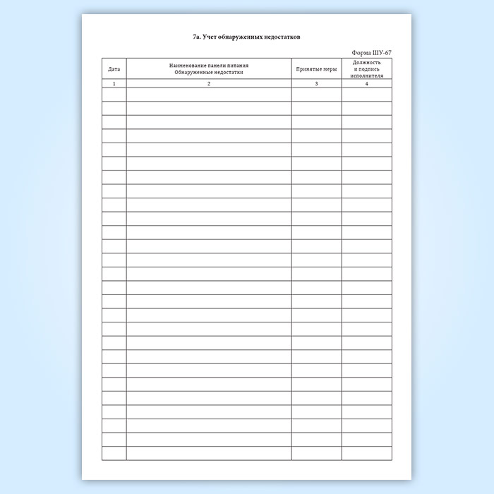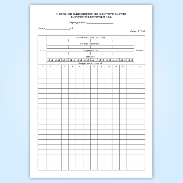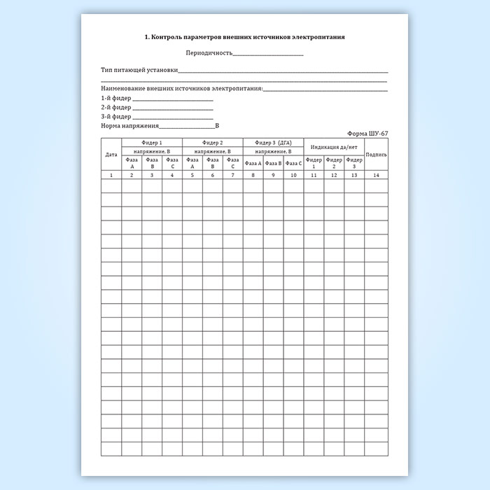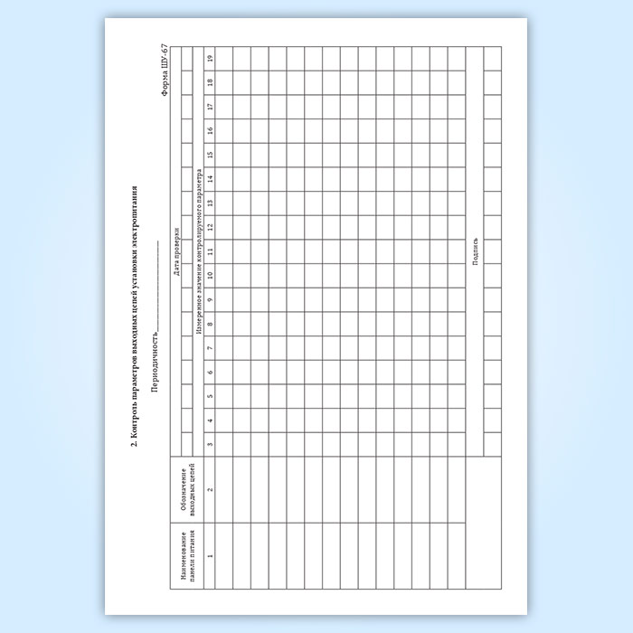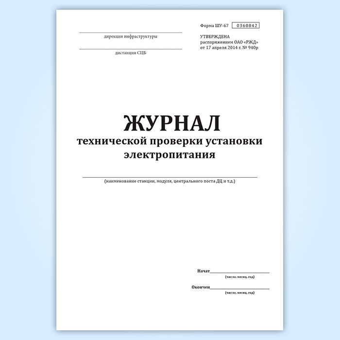 Журнал технической проверки установки электропитания (форма ШУ-67)