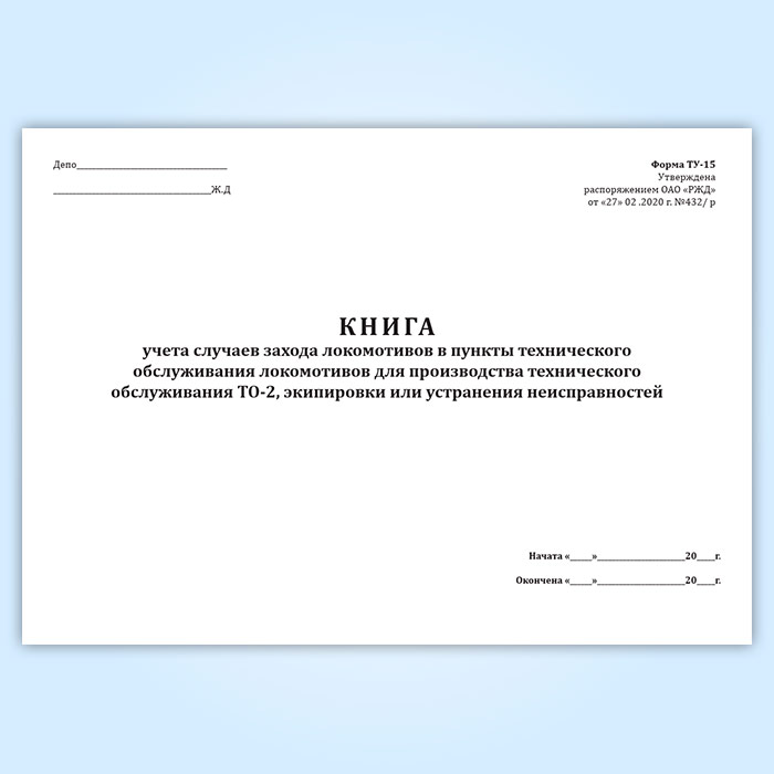 Книга учета случаев захода локомотивов в пункты технического обслуживания локомотивов для производства технического обслуживания ТО-2, экипировки или устранения неисправностей (форма ТУ-15)