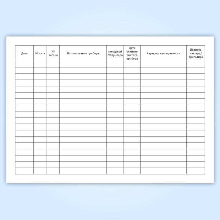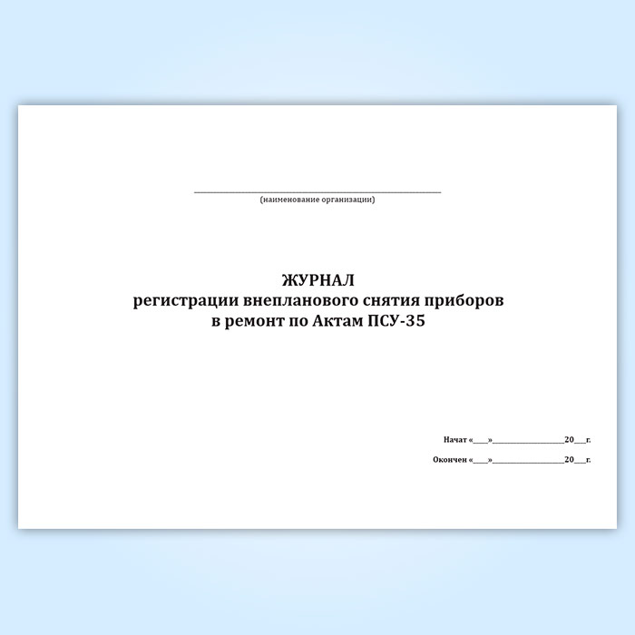 Журнал регистрации внепланового снятия приборов в ремонт по Актам ПСУ-35