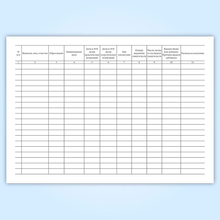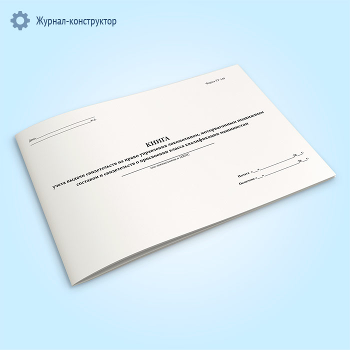 Книга учета выдачи свидетельств на право управления локомотивом, моторвагонным подвижным составом и свидетельств о присвоении класса квалификации машинистам (форма ТУ-149)