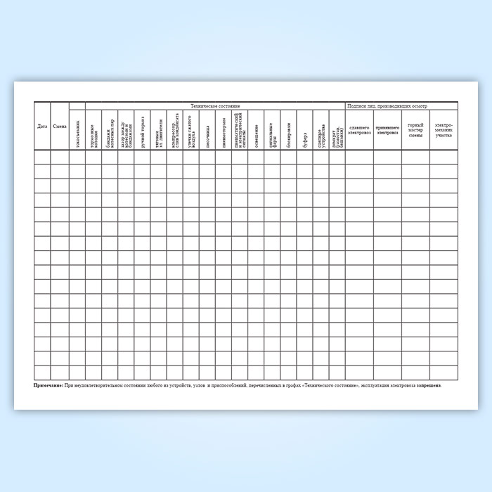 На каждом электровозе имеется журнал для учета технического состояния, а также записи о приемке и сдаче электровоза локомотивными бригадами.