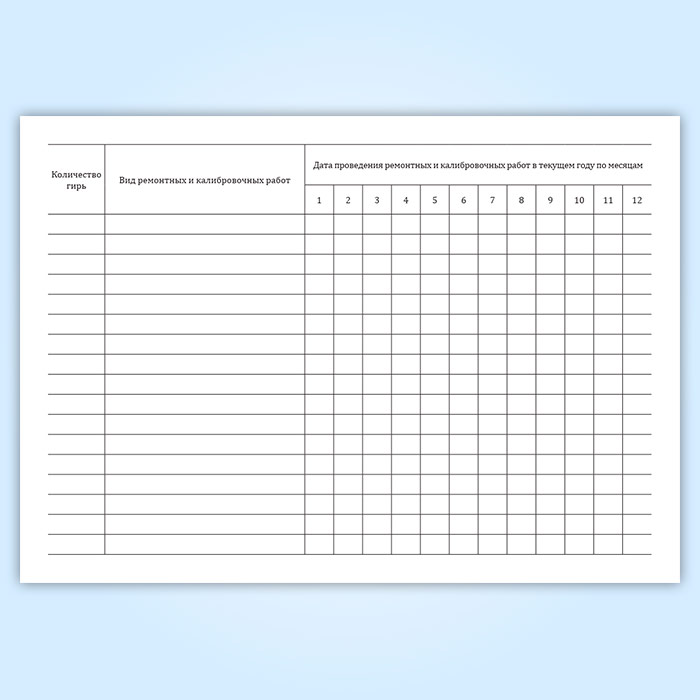 Дата проведения ремонтных и калибровочных работ в текущем году по месяцам