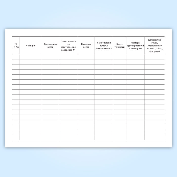Весовой сводный журнал о количестве весов и характеристике весов имеет графы: