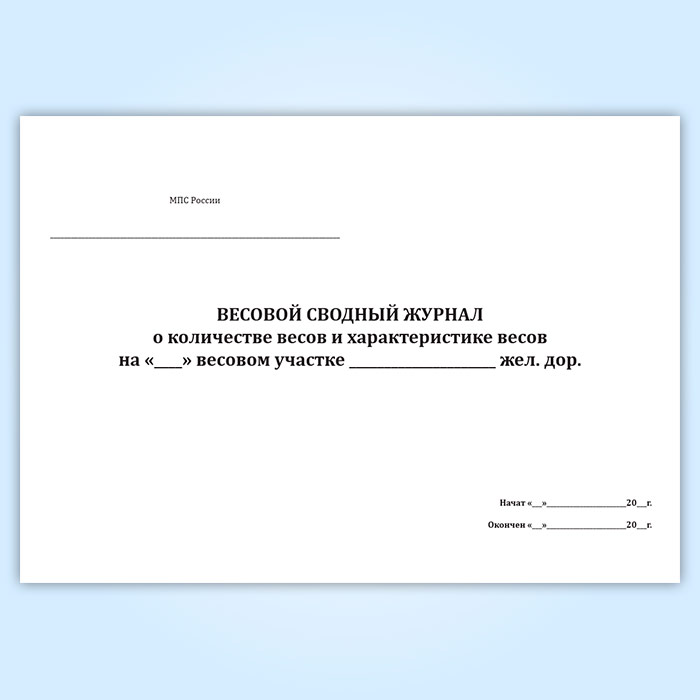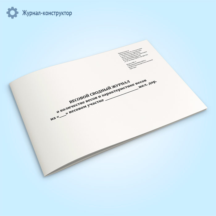 Форма весового сводного журнала о количестве весов и характеристике весов (ГВУ-2) соответствует Приложению 2 к Инструкции по эксплуатации, техническому обслуживанию, ремонту и метрологическому обеспечению средств измерений массы грузов, перевозимых железнодорожным транспортом Российской Федерации. ЦМ-921