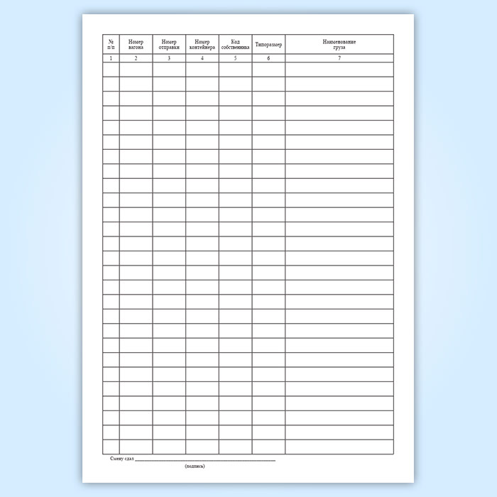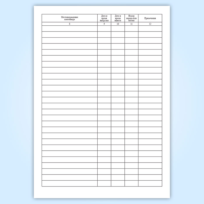Книга выгрузки контейнеров по площадке (Форма ГУ-44к) имеет графы: