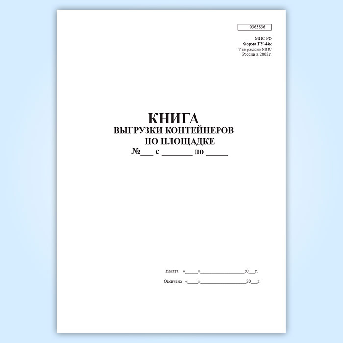Форма книги выгрузки контейнеров по площадке (ГУ-44к) приведена в Распоряжении ОАО "РЖД" от 01.03.2007 N 333р "Об утверждении Инструкции по ведению на станциях коммерческой отчетности при грузовых перевозках ОАО "РЖД".