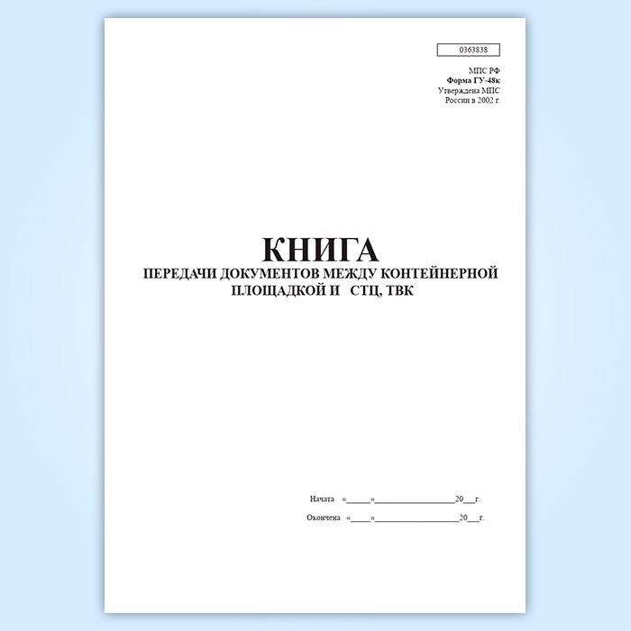 Книга передачи документов между контейнерной площадкой и СТЦ (ТВК) (форма ГУ-48к)