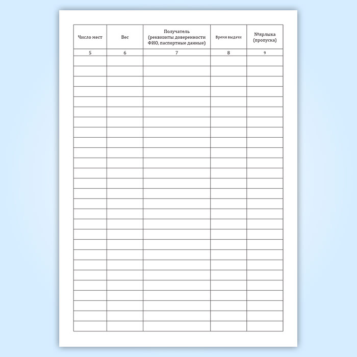 В графе 7 указывается фамилия получателя багажа и наименование организации-получателя грузобагажа.