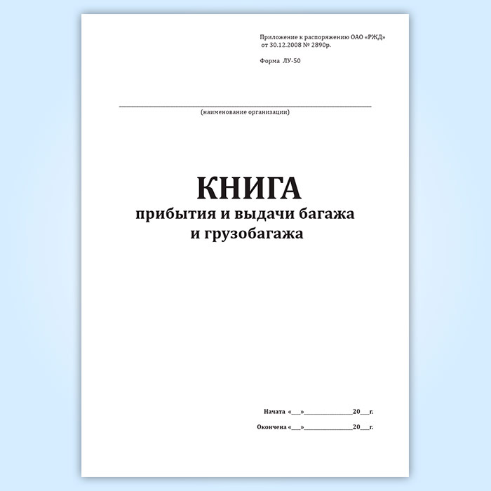 Форма Книги прибытия и выдачи багажа и грузобагажа (Форма ЛУ-50) соответствует Приложению к распоряжению ОАО "РЖД" от 30.12.2008 № 2890р.