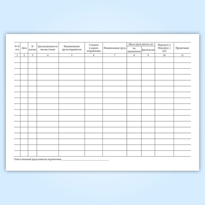2.12. В строке "Ответственный представитель перевозчика" работник станции, ответственный за внесение данных в Книгу перевесок ставит дату, время, свою фамилию и подпись.