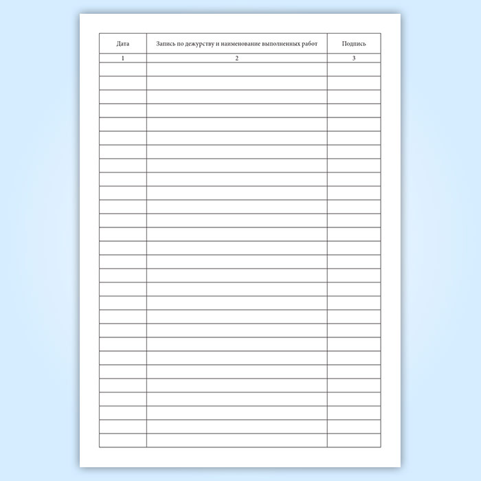 2. Запись по дежурству и наименование выполненных работ