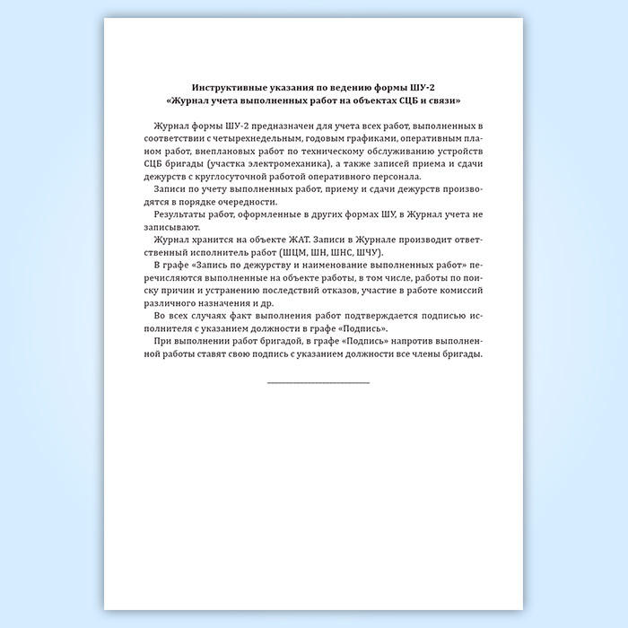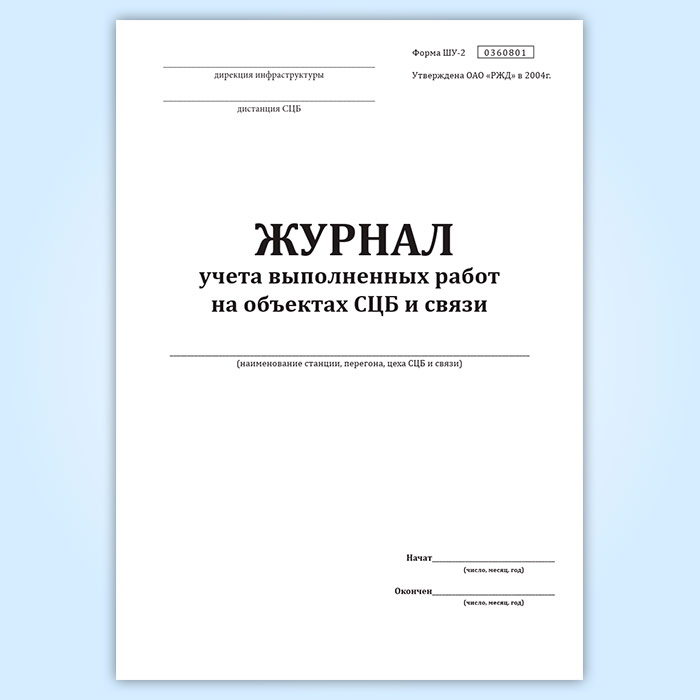 Журнал учета выполненных работ на объектах СЦБ и связи (форма Шу-2)